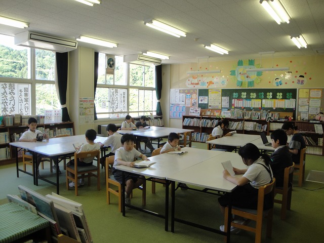 1~6年生までの赤組さんが図書室に集合し、読書をします。