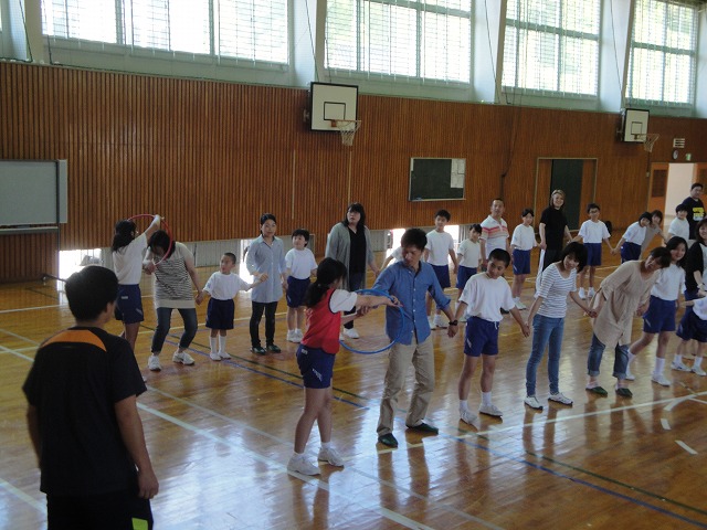 低学年にも円盤を回してあげようとする高学年の姿が見られました。