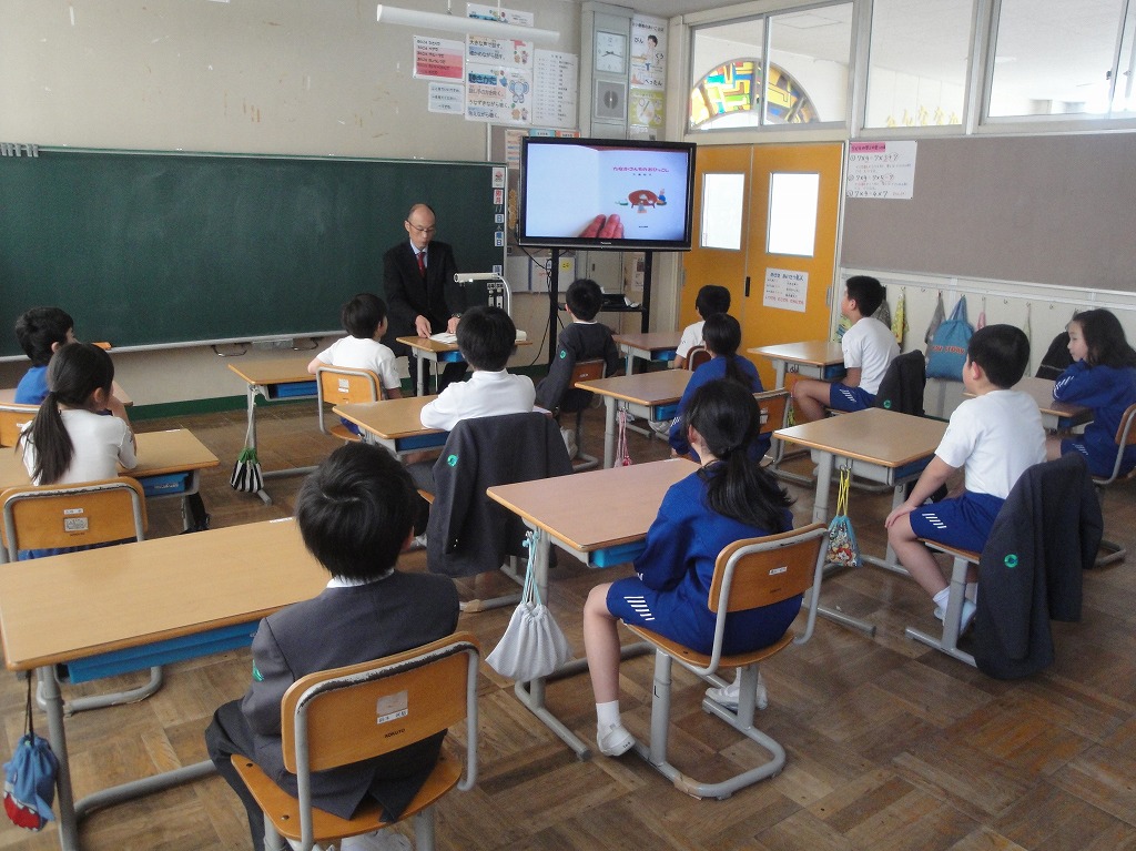 本校では、毎月1回級外の先生方による朝の読み聞かせの日があります。