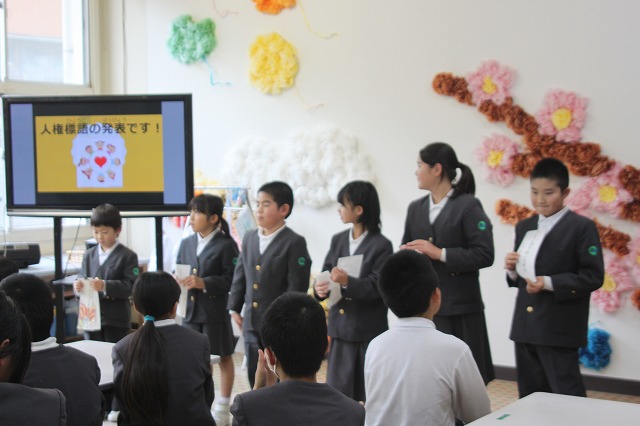 その後、人権標語優秀賞をもらったクラス代表が、標語と作った理由を発表してくれました。