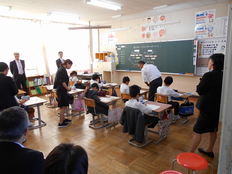 5限目、4年生の算数の授業を、石川県教育委員会、輪島市教育委員会、輪島中学校からお客様が参観にいらっしゃいました。
