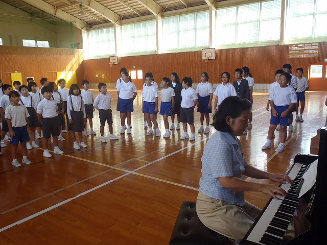 今月19日の「合唱の集い」に向けて、全校で練習しています。