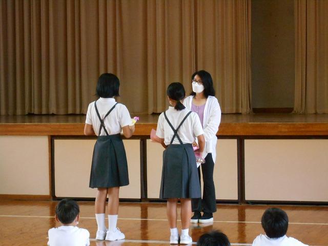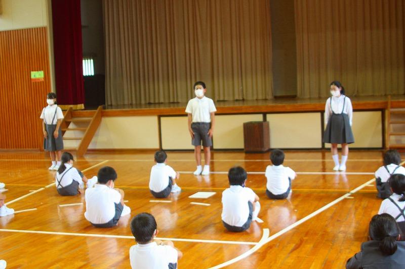 今日の全校集会では、表彰と後期児童会役員任命式、各委員会からのお知らせなどがありました。