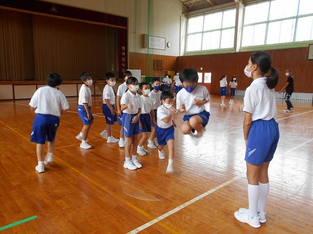 1年生にとって8の字跳びは初めてです。
