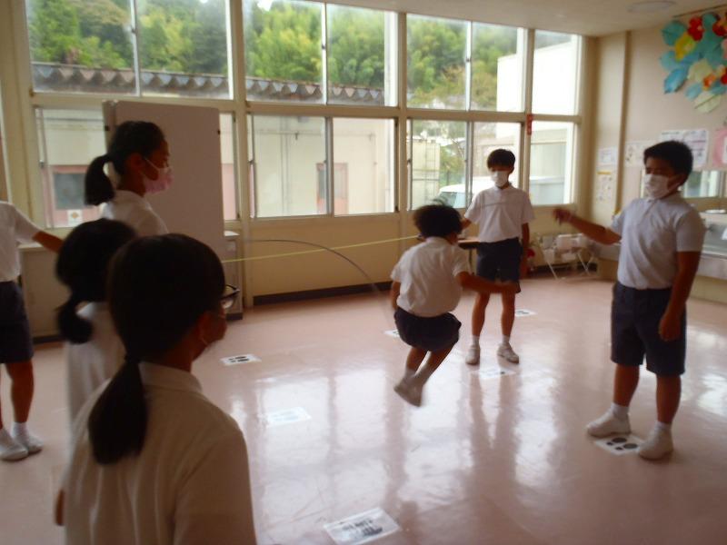 1年生が早く8の字跳びができるように…と、昼休みには他の学年のみんなが集まって教えてくれました。