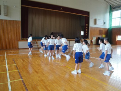 木曜日の長休み時間は、スポチャレに挑戦です。始めは、8の字跳びです。