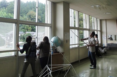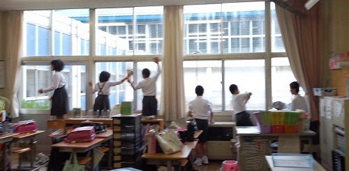 この後、保護者と教職員、児童がそれぞれの担当場所に分かれて窓ふきをしました。