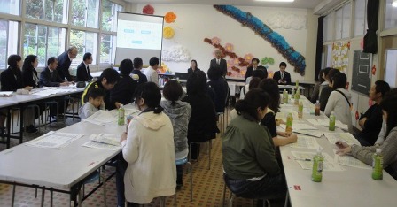 市教委から、教育長さんのお話や、担当者からの説明があった後、学校での取り組みの説明をしました。いろいろな質問が出て、市教委のほうから丁寧に回答していただきました。