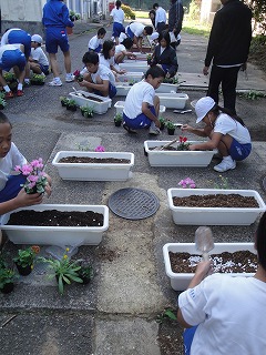 プランターの花はしばらく学校で育てた後、家に持ち帰ってそれぞれの家で育てることになります。