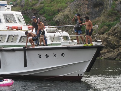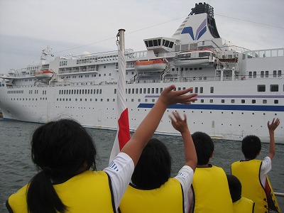はじめに、港の役割などの説明を聞いてから船に乗り込みました。船内から防波堤や消波ブロックを見ました。