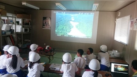 次に、長沢道路の工事現場に行きました。ここでは、工事現場の説明を聞いたり現場の機器を見学しました。特に興味深かったのは、ドローンによる空撮映像を見せてもらったことです。ドローンのスピードや高さ、それを操縦するテクニックにも驚きました。
