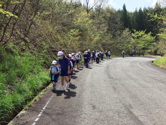 春の遠足をしました。3つの縦割り班に分かれて歩きました。