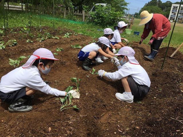 地域の先生に来校していただき、サツマイモの苗を植えました。