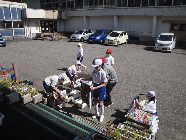 そこで、3・4年生が夏に向けて花の苗を植えました。