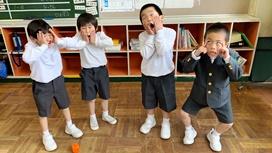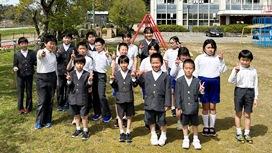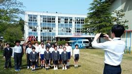 4月14日,校庭で,1年生3名を含む全校児童18名が皆元気に撮影に臨みました。残念ながら桜の花はとうに散ってしまっていましたが,児童たちにはそんなことは関係なし。いい天気に恵まれた日を選んだ甲斐あって,全員が笑顔でした。