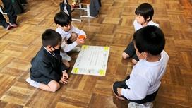 すごろくトーキングをしました。出たマス目に書いてあることを自己紹介形式で友達に伝えました。スペシャルマスに止まったら、みんなで協力してお題に書いてあるポーズをとりました。みんなで楽しく交流することができました。ふり返りでも「友達のことをもっと知れてよかった。」と発表したお友達がいました。(田中丈)