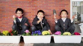 河原田公民館のご協力で花を購入。4年生がプランターに植え,玄関先に並べました。プリムラ・ポリアンサとプリムラ・ジュリアン,そしてカランコエをそれぞれ3個,計9個です。これだけで玄関が春らしく華やかになりました。立春も過ぎたことですし,本当の春もそろそろですね。