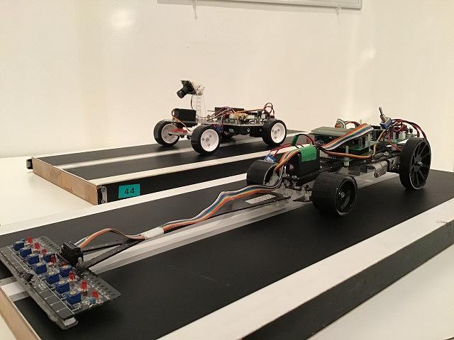 マイコンカーラリーは、支給されたマイコンカーボードを付けたマシンで、コースを自律で完走するスピードを競います。画像処理は、車体に付けたカメラで映像を解析して走行します。私たちはコースを完走することを目標にしました。
