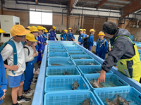 「橋立漁港」では実際に獲れた魚を見学したり漁船に乗ったりと 貴重な体験ができました。「北前船の里資料館」では ガイドさんのお話を聞き、歴史ある北前船についてたくさん知ることができました。きれいな海を眺めながらの ステキな校外学習でした。