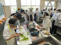 野菜の切り方、いためる順序、火加減、味付け、そして油はねを防ぐことも気をつけながら調理することができました。