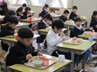 「学校の給食 おいしいね!」「カレーライス、大好き」 笑顔がたくさん見られました。