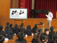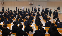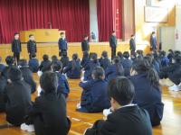 朝、全校集会がありました。