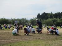 春から雨が降るたびに運動場の草がどんどん広がり、草刈りしたり除草剤(安全なものです)をまいたりしても追いつかず... トラックの中まで緑色になっていたのですが、多くの保護者や4・5・6・年生の子ども達、先生方が集まって作業してくださったおかけで、ずいぶんスッキリしました。これで気持ちよく運動会の練習ができます。休み時間もサッカーのボールを追いかけやすくなりました。