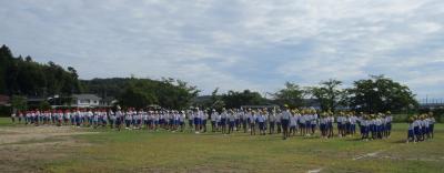 全校児童が運動所に出て、入退場や退場、開閉会式のならび方や流れを確認しました。