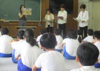 図書ボランティア「お話どんどん」さんたちによる紙芝居もありました。戦時下の上野動物園で 一生懸命生きようとした3頭のぞうが命を失ってしまった実話です。子ども達は 皆さんの迫真の声の演技に引き込まれ、真剣な眼差しで聞き入っていました。