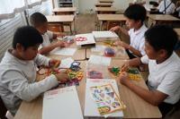 はじめはかなり緊張していましたが、授業を受ける中で錦城小、南郷小、三谷小の6年生とも相談したり談笑したりする姿も見られるようになってきました。