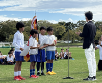 2部には4年生8人の「きんひがFC]」が参加。他の学校のからだの大きい5年生主体のチームにも気後れせず思い切りぶつかって善戦し、「躍進賞」でした。来年の活躍が期待できる戦いぶりでした!