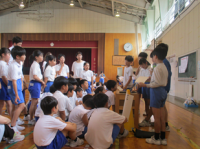 音楽の時間に練習してきた2曲「パレード ホッホー」と「空も飛べるはず」の合唱を披露しました。