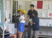 今回は教室までお迎えに来ていただき、そこで引き渡しカードをもとに双方に確認しながら引き渡す訓練でした。場合によっては体育館や運動場等になることも想定されます。