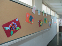 ふれあい学級の子どもたちが、お花紙や色画用紙を上手に組み合わせて「あじさい」の作品を仕上げて飾ってくれました。