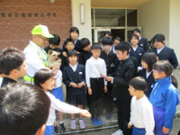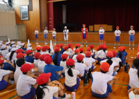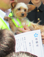 そこで、今日 ハッピーちゃんを「わんわんパトロール隊」に任命するとともに、児童代表が「依頼状」を渡しました。