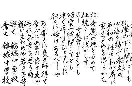 3本の支柱は、文殊の知恵とたくましく伸びゆく姿を、リングは和と協力、そして、次代を担う子ども達の育成に学校、家庭、地域が一体となって取り組む連携の力強い姿を表しています。