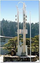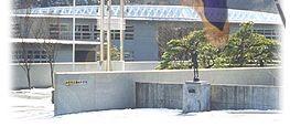 このモニュメントは、本校創立50周年記念事業により、本校のシンボルとして和風と洋風の調和を基盤に建立されたものです。