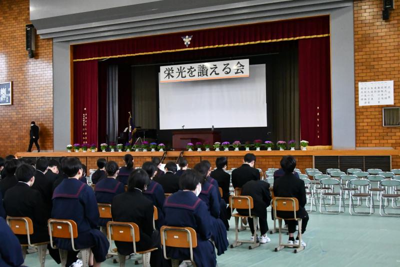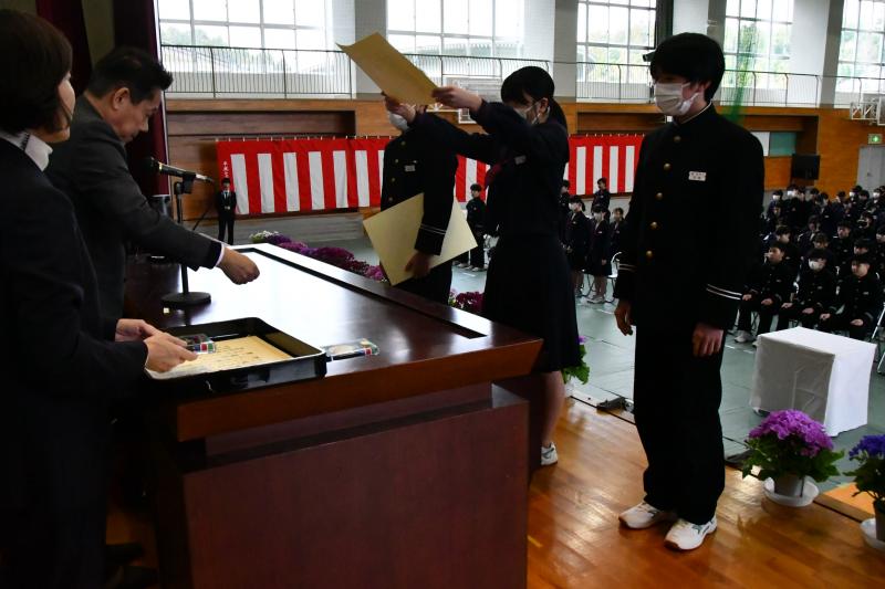 3年生の今までの学校生活の中から、優秀な成績・生徒会活動・皆勤賞のいずれかに該当する生徒を表彰しました。