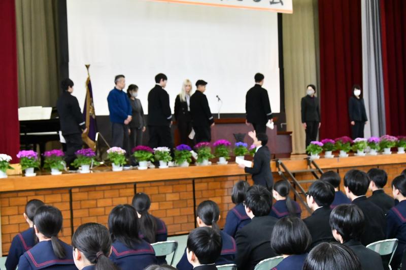 また、その後は3年生から今までお世話になった先生方へ感謝状の贈呈式がありました。