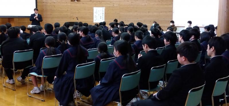 「メディアと健康~錦中生の健康を守るために~」というテーマで講話がありました。