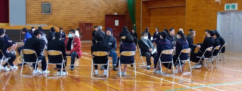 トーク・フォークダンスとは大人と中学生が向かい合って、テーマにそって数分間トークしたら、次々に新しい人と入れ替わって話す対話の方法です。