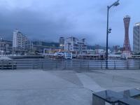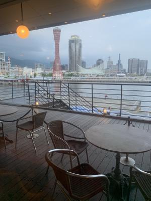 食事会場から見える神戸タワー。夕日が当たる時間は最高だとか。この日は曇り空。
