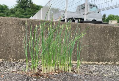 道端に生えていた「野蒜」の背比べ。なかなかたくましい生命力です。