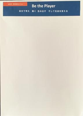 本校の教職員が学校教育目標を自分事としてとらえ、咀嚼することで、より主体的に生徒に働きかけ、日々の実践を通して加賀市学校教育ビジョンBE THE PLAYERを実現していく、してしまう?という莫大な構想なのですが。