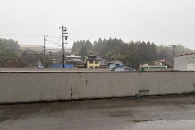 わかりますか? 今も雪がちらついています。校長室は暖房の工事中のため、寒冷地仕様の装備が必要です。