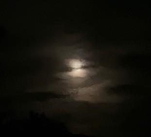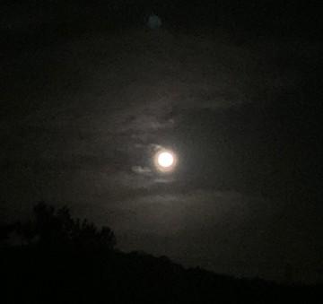出てきました。束の間の雲の晴れ間から、中秋の名月が。満月は7日、ハーベストムーン。この写真は7日午前4時頃の月ですから、これは、中秋の名月から満月に向かう月ということになりますか。