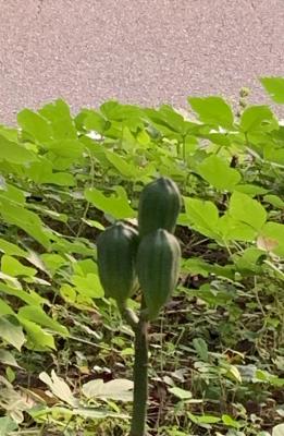 このウバユリの実なんです。7月ごろに咲いていたこの花も、結実し命を次につなぐ作業に入っています。秋に近づいています。