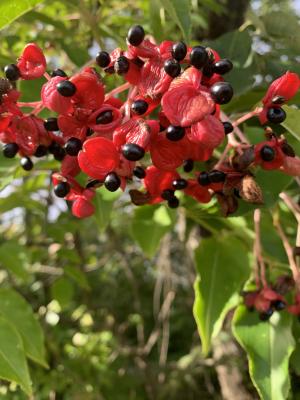 これはゴンズイというそうです。特に食べられるものではありませんが、きれいな赤が印象的です。これも近くの里山に自生してました。