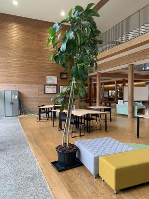 今は、学びの空間のシンボルツリーとなって、生徒たちの学びを温かく見守ってくれています。日が当たるときは小さいけれど、木陰を作ってくれています。