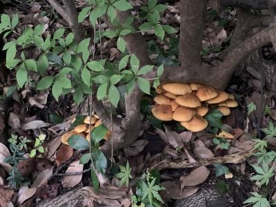 以前も掲載しましたが、「オオワライタケ」かと思うのですが、いたるところにありました。見た目は大きなナメコのようです。